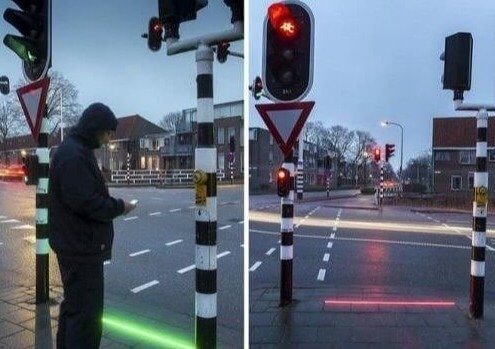 Holland remarked, "If you can't beat them, join them." Since people texting while walking into oncoming traffic is a common problem, the Dutch just opted to change the traffic lights to fit our new habit of continuously checking our phones. They were so smart that they put lights on the crosswalks themselves, like on the ground, so that even people who were texting would see them.