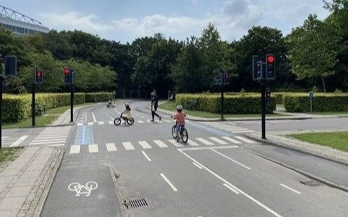 So, listen to this: a really smart person in Copenhagen came up with the brilliant idea to make a dedicated area for kids to learn how to drive. This place is supposed to look like the tough streets of the large metropolis, yet there aren't any real cars here. This helps the kids get used to riding their bikes throughout the city and teaches them crucial traffic and safety rules. The small setup also looks really cute.