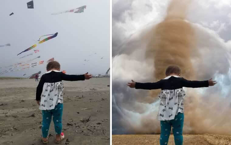 Someone believed that using Photoshop may make it look more spectacular because it looks like a kid is in charge of a tiny fleet of kites.