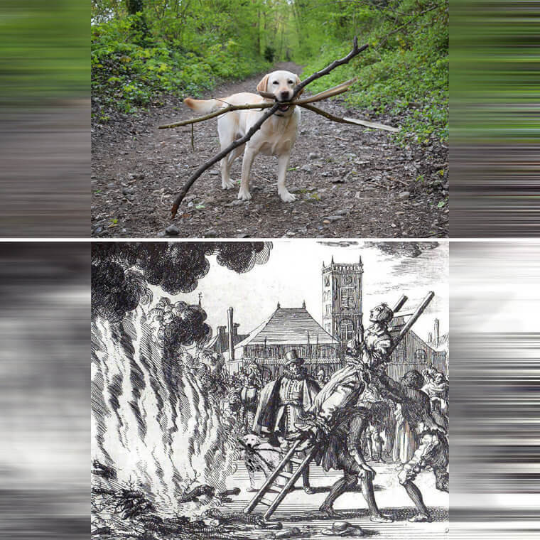 The edited picture is really grim, but it also makes sense because people used to burn witches back then.