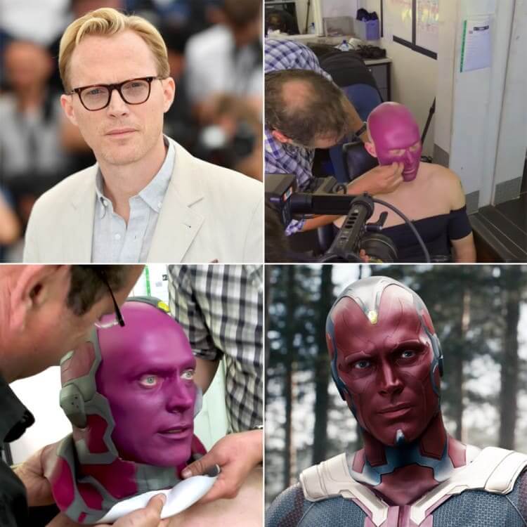 They didn't use a lot of prosthetics on Vision's role so he could move around freely. They also wanted to maintain Paul Bettany's delicate features. The prosthetics ended up being utilized on his forehead, neck, and the back of his head, leaving his face open.