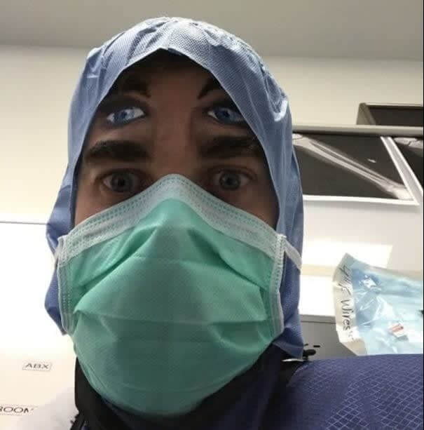 You would undoubtedly question what medicines the nurse gave you in your IV if the anesthesiologist arrived into the operating room with two sets of eyes. But this doctor was only playing around to make his patients feel like they were seeing double. Doctors have to find something fun to do while they deal with trauma all day, even if it's a little mean. We would like to know who drew the second set of eyes because that person is a great artist.