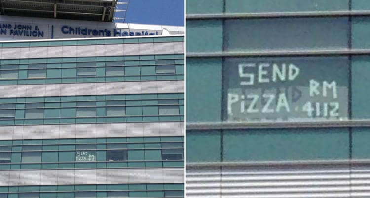 One patient at the Children's Hospital in Los Angeles, Hazel, put up a sign on her window asking for pizza. She must have been tired of the hospital cuisine and wanted a tasty slice of pizza with cheese on it. Hazel was lucky that she got a lot of attention and made it onto the local news. A lot of people sent Hazel pizza, and since she couldn't eat it all by herself, her family served the nurses, physicians, and other patients on her floor. Hazel was a lively little girl who was well-known on the pediatric oncology unit. She died in 2018.