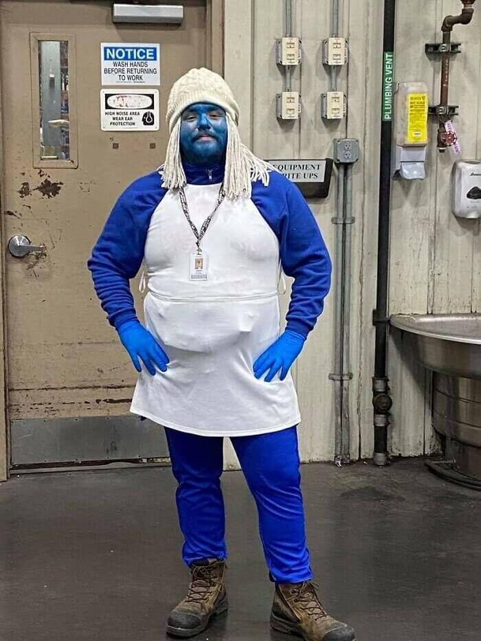 This doesn't simply happen at work. How many times have we seen groups agree to dress up as something, but only one person actually did it? Well, it looks like this guy was the one this time because he was the only one that dressed up like a smurf after all of his coworkers agreed to do so. He really painted his whole face blue, put on a wig, and looked great in his attire.