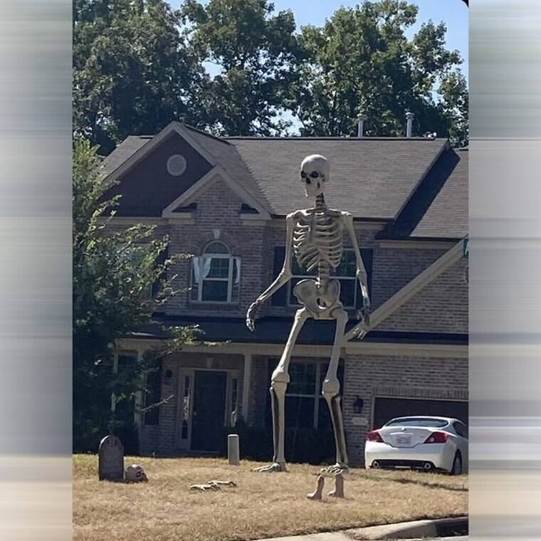 It looks like this skeleton was in the yard from the beginning of September until Halloween. But can you really blame them? Who has room to store a decoration that big?