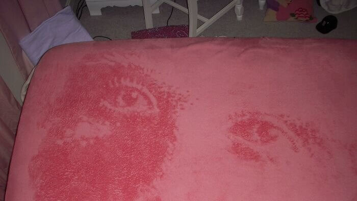 This is a really detailed drawing that the original poster made with just their finger on a piece of velvet furniture. The artist must have been very patient; this must have taken a long time to finish! We only hope that no one unintentionally sits on their work, because it would be a huge waste! We can't help but wonder if there's a way for you to keep this work.