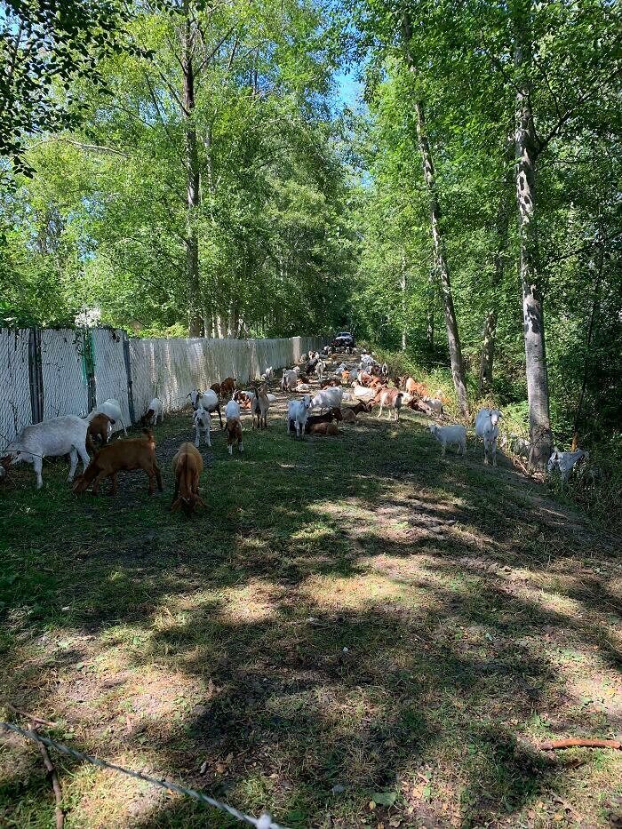 You would think this is a photo of the goat pen at your local petting zoo. But no. It's strange, because what you're really looking at is the back of someone's apartment building. The person who posted this remarked that this picture shows the time when their landlord rented 200 goats to munch the weeds along the overgrown path and riverbank. We won't lie; we were speechless when we first saw this picture.