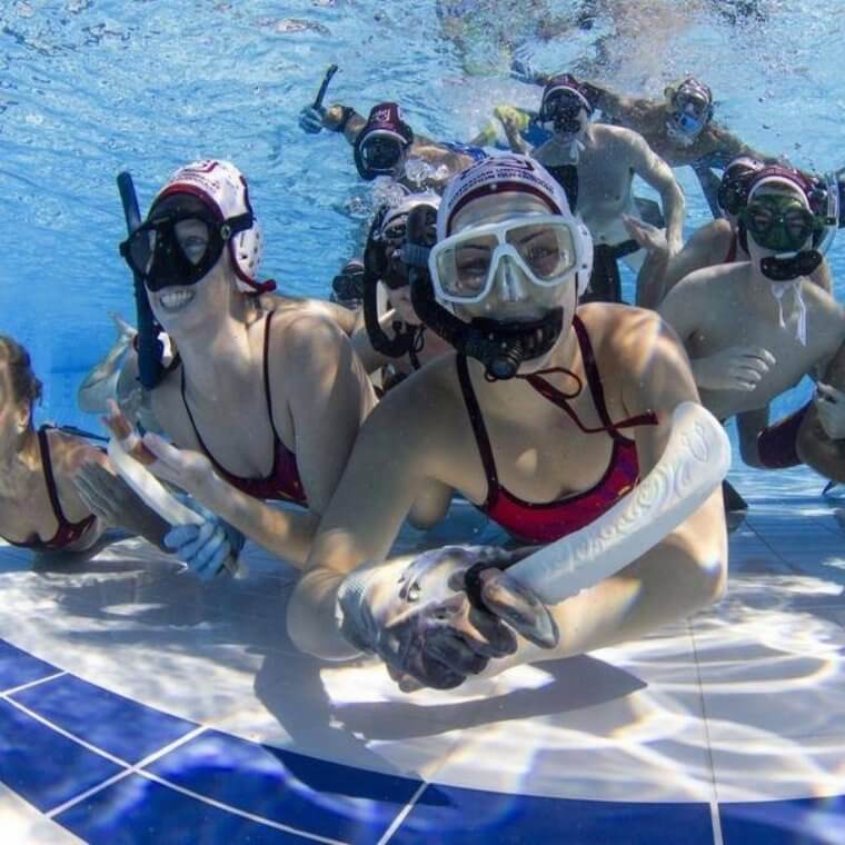 The sticks are longer than regular hockey sticks, and the puck is a little heavier than a hockey puck. Underwater hockey can be fast-paced and entertaining, and it's a fantastic way to stay in shape while having fun.